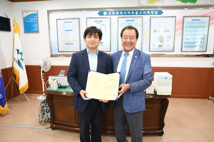 배상록 의장은 “앞으로 급변하는 사회에 맞춰 법률해석과 자문을 통해 미추홀구의회에 큰 도움이 되기를 부탁한다”고 밝혔다.