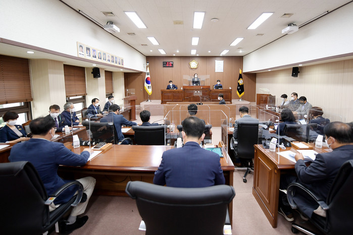 이날 회의에서는 안건 의결에 앞서 오강현·배강민 의원이 각각 '디지털(인터넷, 스마트폰)에도 K방역이 절실하다', '쓰레기 대란! 깨끗한 도시환경 조성을 바라며'라는 제목의 5분 발언을 먼저 진행했다.