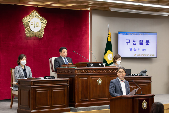 | ▲ 황동현 의원이 구정질문을 하고 있다. (사진제공=강서구의회) |