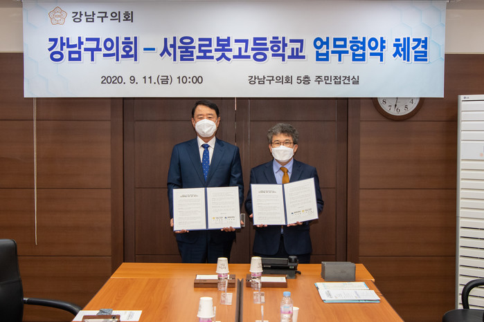[시민일보 = 이대우 기자] 서울 강남구의회(의장 한용대)가 최근 구의회 5층 주민접견실에서 서울로봇고등학교와 4차 산업혁명 도래에 따른 구민의 삶의 질 향상을 위해 업무협약을 체결했다.