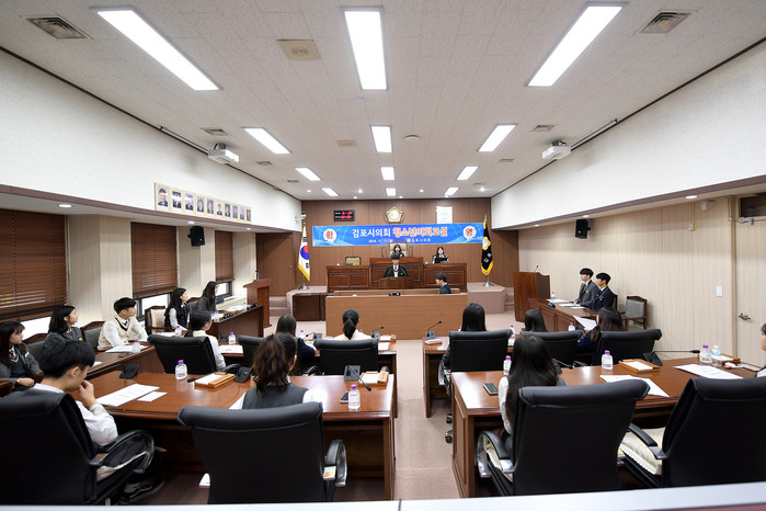 [김포=문찬식 기자] 경기 김포시의회는 11일 김포지역 8개 학교 중고생으로 구성된 김포시차세대위원회 위원 20명이 참여한 가운데 '청소년의회 교실'을 열었다.