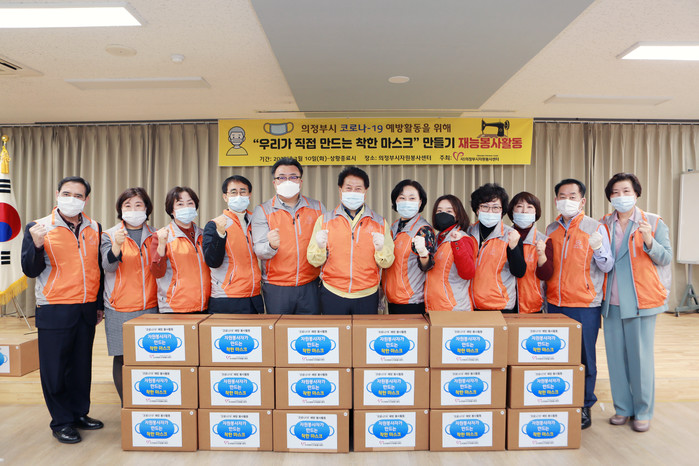[의정부=손우정 기자] 경기 의정부시의회는 24일 코로나19의 지역사회 감염 예방을 위해 의정부시자원봉사센터에서 진행한 ‘착한 마스크 만들기’ 자원봉사 활동에 참여했다.