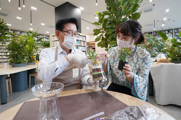 유덕열 동대문구청장이 최근 코로나19로 지친 구민들을 위해 유튜버로 변신해 다육이 화분·주물럭 비누 만들기 등 집에서 할 수 있는 활동을 소개하는 영상 콘텐츠 제작에 참여했다. 이번 영상은 ‘DBS 동대문구청 인터넷방송’·‘와락 튜브’ 유튜브 채널에서 13일부터 볼 수 있다. 사진은 유 구청장이 다육이 화분을 만드는 과정을 촬영하고 있는 모습. (사진제공=동대문구청)