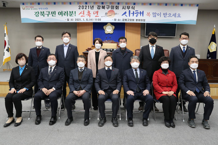 이 의장은 시무식 신년 인사에서 "지난 한 해는 코로나19로 인해 모두가 어려운 시간을 보냈다. 그러나 코로나19로부터 구민의 안전과 무너진 지역 경제를 회복하기 위해 우리는 그 어느 때보다 한마음이 됐던 뜻깊은 시간이었다. 코로나19의 대유행 속에서 제8대 후반기에 돌입한 강북구의회는 대면활동의 많은 어려움 속에서도 ‘현장 중심의 구민과 함께하는 의회’를 지향하며 공백 없는 의정활동을 펼치기 위해 많은 노력을 기울여 왔다"며 "새해에도 강북구의회는 코로나19로 인해 잃어버린 소중한 일상을 되찾기 위한 노력과 함께, 구민 여러분의 행복과 강북구 발전을 위해 더욱 치열하게 고민해 나가겠다. 우리는 지금 위기와 희망이 교차하는 지점에 서있다. 모두가 힘든 상황이지만 우리 모두 조금만 더 힘을 내어 이 어려움을 함께 이겨내자"고 힘찬 새해 포부를 밝혔다.