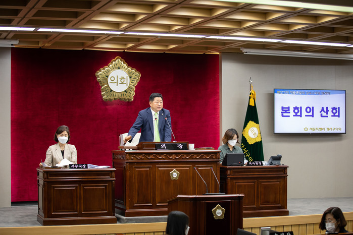 | ▲ 김병진 의장이 제272회 제1차 정례회 폐회를 선언하고 있다. (사진제공=강서구의회) |