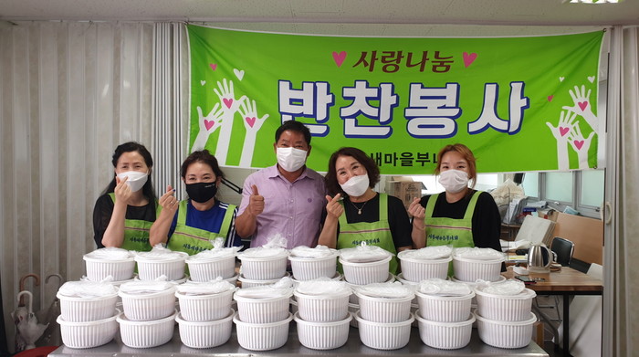 경기 수원시 팔달구 지동 새마을부녀회는 최근 지역내 홀몸노인 40명을 대상으로 닭개장과 열무김치를 전달했다. 사진은 관계자들이 음식을 포장한 후 기념촬영을 하는 모습. (사진제공=팔달구청)