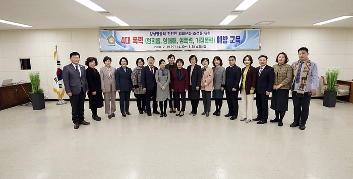 김선화 의장은 “이번 교육을 통해 4대 폭력 없는 안전한 사회, 공정하고 투명한 사회분위기 조성을 위해 의원 및 공직자들이 솔선수범하길 바라며, 서로 배려하고 존중하는 건강한 조직문화가 조성될 수 있도록 안양시의회가 앞장서주길 당부한다”고 말했다.