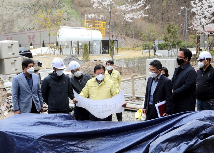 조근제 함안군수는 지난 1일 관계공무원과 함께 함안하늘공원 내 공설장례식장 건립공사 현장을 방문해 현장 관계자로부터 사업 현황 설명을 청취하고 진행사항을 점검했다.