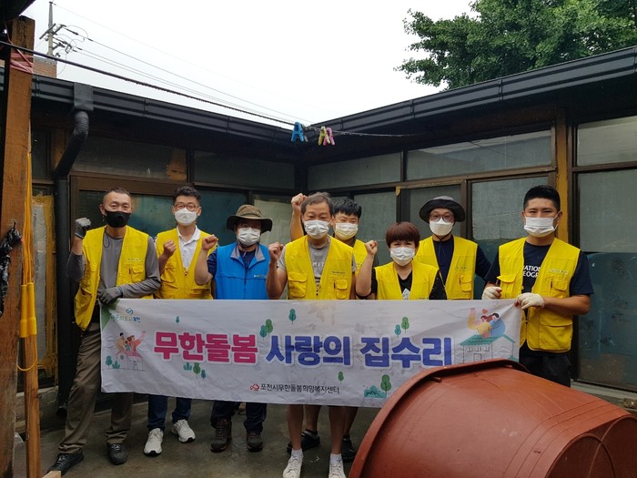 경기 포천시무한돌봄희망복지센터는 최근 포천사랑나눔회의 지원으로 영중면내 주거취약가구의 주거환경 개선사업을 진행했다. 이날 참여자들은 대상가구에 도배·전등 교체 등 집수리를 지원했다. 사진은 봉사자들이 기념촬영을 하는 모습. (사진제공=포천시청)