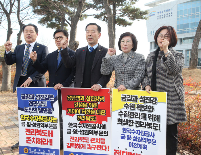 전북도의회 의원들이 최근 전주에 위치한 수자원공사(이하 수공) 금강·영산강·섬진강(금·영·섬) 유역본부 분할 검토에 반대입장을 수공에 전달했다.