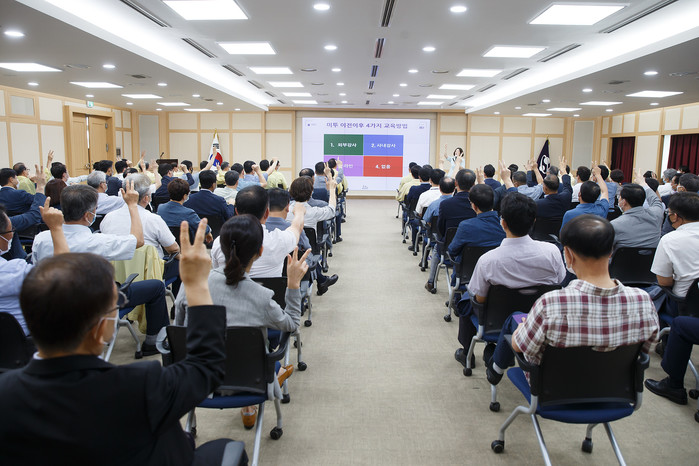 이번 교육은 최근 N번방 사건 및 공공기관 내 미투운동 확산에 대응하여 공직자의 성에 대한 인식제고와 양성평등한 공직문화 정착을 위해 마련되었으며, 특히 관리직 공무원의 역할과 책임이 중요한 만큼 부서장 등 간부공무원은 필수 참석대상으로 하였다.