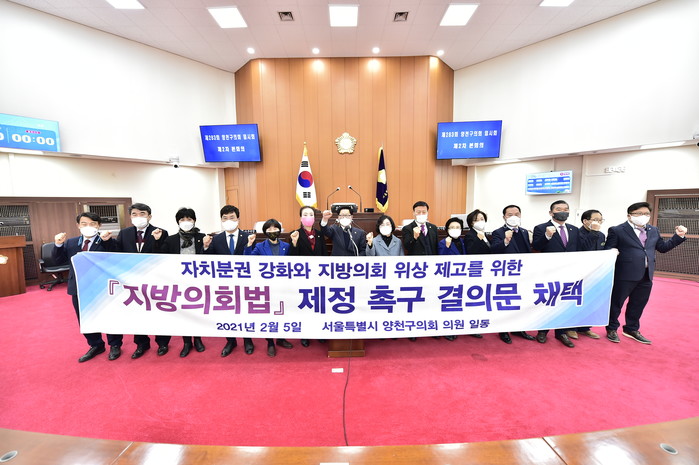 이에 서울특별시 양천구의회는 온전한 지방자치·자치분권의 실현으로 주민의 복리를 증진하고, 풀뿌리 민주주의를 활성화할 수 있도록 다음과 같이 결의한다.