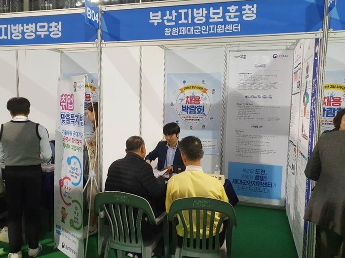 부산지방보훈청 제대군인지원센터는 채용박람회에서 중.장기복부 제대군인들의 취업지원을 위해 행사장에 홍보부스를 마련해 제대군인의 취업 우수성을 채용박람회에 참여한 업체에 널리 알리고, 제대군인에게 적합한 업체 및 일자리를 적극 발굴하여 제공했으며, 현장에서 구직 제대군인들의 애로사항을 청취하고 격려했다.