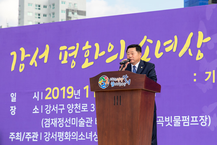 김 의장은 축사를 통해 “이번 강서 평화의 소녀상 건립을 통해 일본군 위안부 피해자 할머니들의 아픔을 기억하고 감싸 안을 수 있는 계기가 되길 바란다”며 “이번 제막식이 올바른 역사 인식과 평화를 바라는 마음을 결집하는 의미 있는 시간이 됐으면 한다”고 말했다.