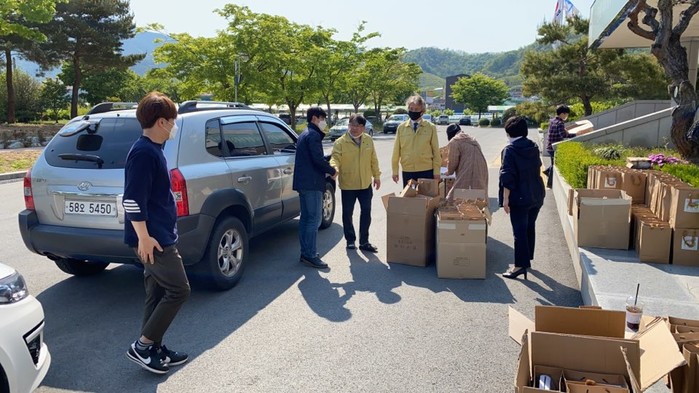 경상남도밀양교육지원청(교육장 정영환)은 4월 28일(화), 29일(수) 이틀간 밀양교육지원청 및 밀양시립도서관에서 코로나 19 극복을 위한 행복 나눔 활동을 실시했다.「코로나 극福! 우리는 행福! 밀양행福교육지구와 함께해요」라는 슬로건 아래 제작된 3종류의 행복꾸러미를 나누는 행사로 진행했다.