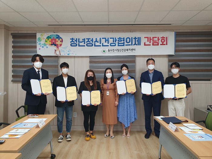 경기 동두천시정신건강복지센터는 최근 청년정신건강협의체 위원회 위촉 및 간담회를 개최해 청년 정신건강 관련 전반에 대해 파악하고 조기 발견·개입을 통해 건강한 시민의 삶을 영위할 수 있도록 논의했다. 사진은 이날 위촉된 위원들이 기념촬영을 하는 모습. (사진제공=동두천시청)