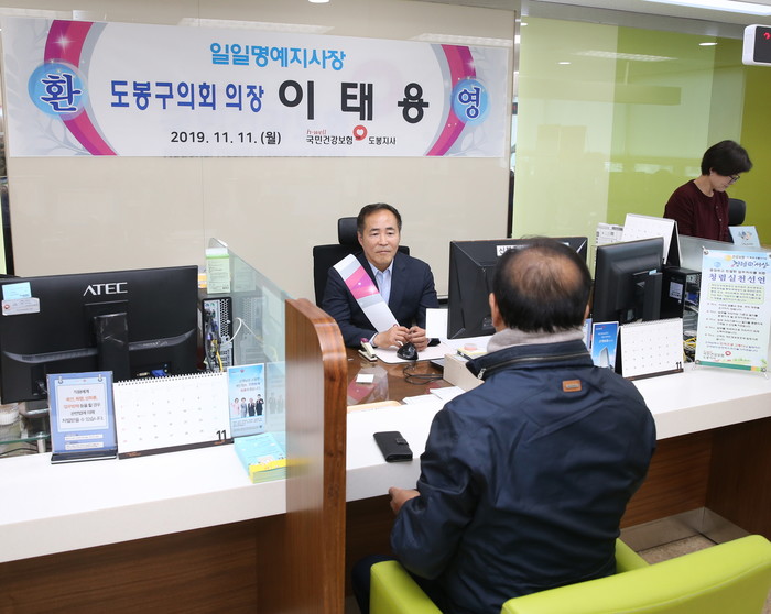 [시민일보 = 황혜빈 기자] 서울 도봉구의회 이태용 의장은 최근 국민건강보험공단 도봉지사 ‘일일명예지사장’으로 위촉돼 공단 실무체험을 했다고 밝혔다.