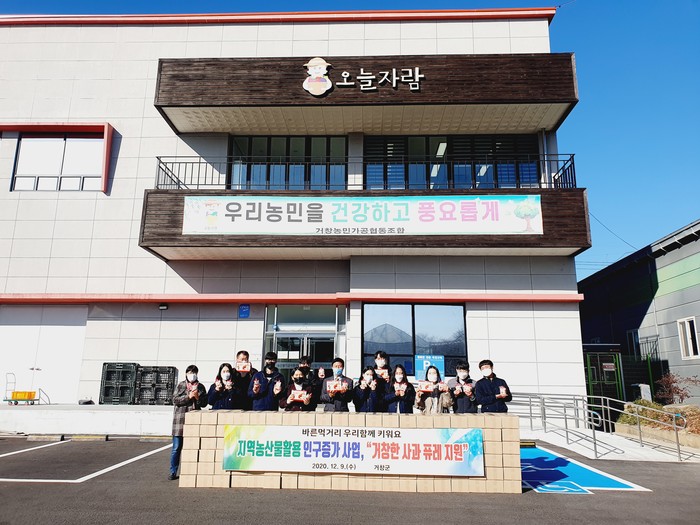 배송되는 사과퓨레는 거창농민이 농사짓고 직접 가공한 ‘오늘자람 거창한사과 사곽사곽 퓨레’이며, 2020년 3월부터 신청을 받아 총 312명의 거창군 출생 영유아들에게 사과퓨레 이유식을 지원했다.