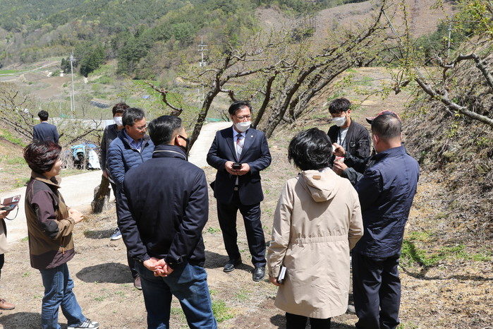 [곡성=강승호 기자] 전남 곡성군의회는 이상저온으로 피해를 입은 옥과면 사과 농가 등 과수 농가 3곳을 방문해 농업인의 안타까운 마음을 위로하고 구체적인 피해 상황을 점검했다.