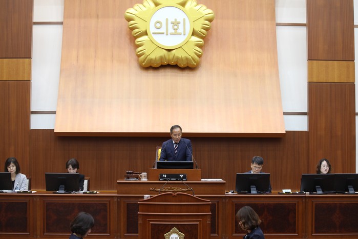 이날 안건 처리에 앞서, 홍국표·박진식 의원이 5분 자유발언에 나섰다.