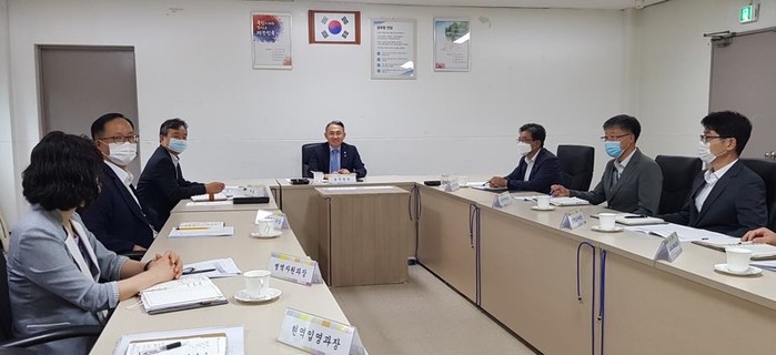 모종화 병무청장이 1일 서울지방병무청을 방문했다. 이날 모 청장은 임재하 서울지방병무청장으로부터 복무계획 보고를 받고 직원들을 격려했다. 사진은 모 청장(가운데)과 직원들이 이야기를 하는 모습. (사진제공=병무청)