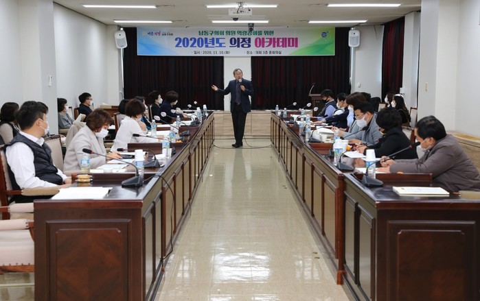 [인천=문찬식 기자] 인천 남동구의회는 최근 의정아카데미를 개최했다고 밝혔다. 2020년도 행정사무감사를 대비해 의원들의 전문성을 높이고 청렴의식을 강화하기 위한 취지다.