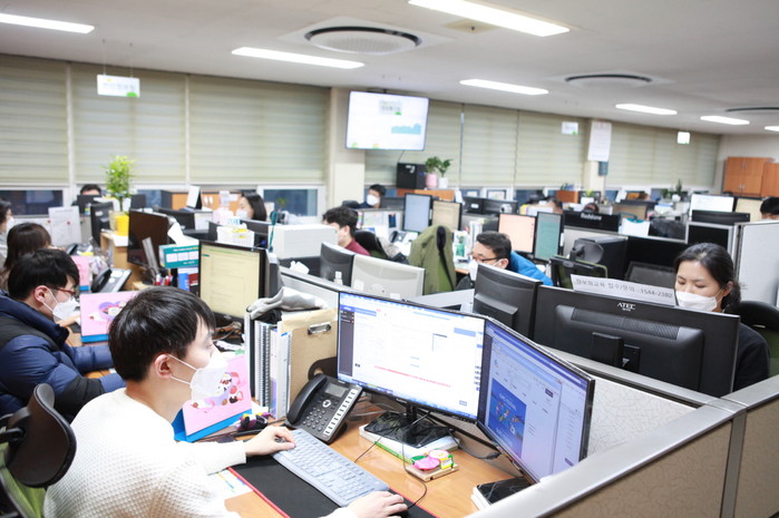 | ▲ 구는 청사내 코로나19 예방을 위해 대응책 강화했다. 사진은 마스크를 쓰고 업무를 보고 있는 직원들의 모습. (사진제공=구로구청) |