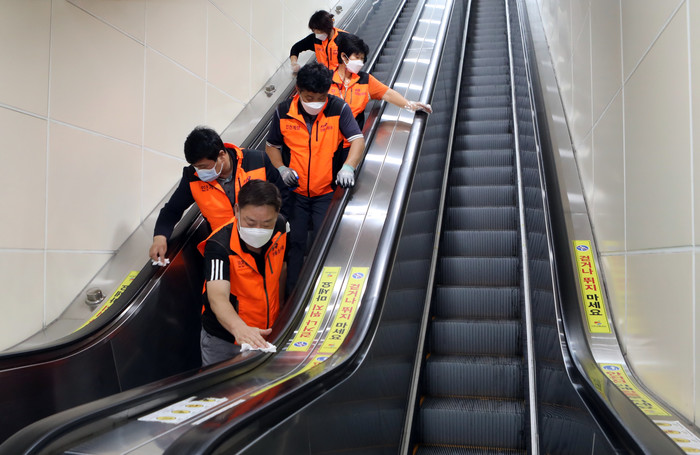 [인천=문찬식 기자] 인천 계양구의회 황순남 기획주민복지 위원장은 최근 정부의 추석 특별 방역 대책에 맞춰 계산 남성 소방대 김일환 대장과 대원 3명과 함께 경인교대역을 시작으로 임학역 사이 지하철 역사내 출입문 손잡이 및 승강기 버튼, 인근 버스정류장의 비가림막이나 의자 등을 손수 닦는 방식으로 방역에 동참했다.