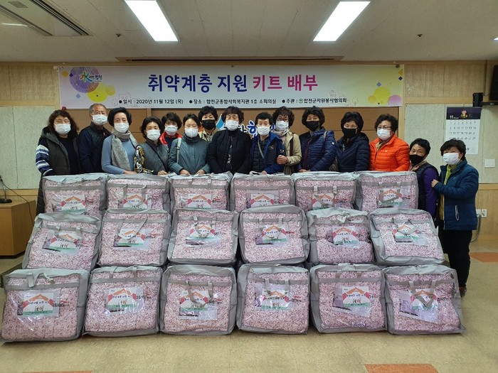 경남 합천군(군수 문준희)은 지난 12일 합천군자원봉사협의회(회장 이정임)가 종합사회복지관 1층 소회의실에서 17개 읍면 취약계층에 안부키트(이불 340채)를 배부했다고 밝혔다.