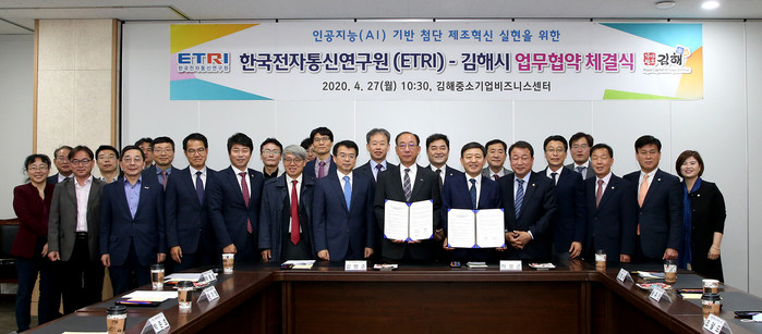김해시(시장 허성곤)가 4차 산업혁명에 대응한 인공지능(AI) 기반 첨단 제조혁신 실현을 위해 국내 ICT 분야를 선도하는 정부출연 연구기관인 한국전자통신연구원(ETRI)과 손잡았다.