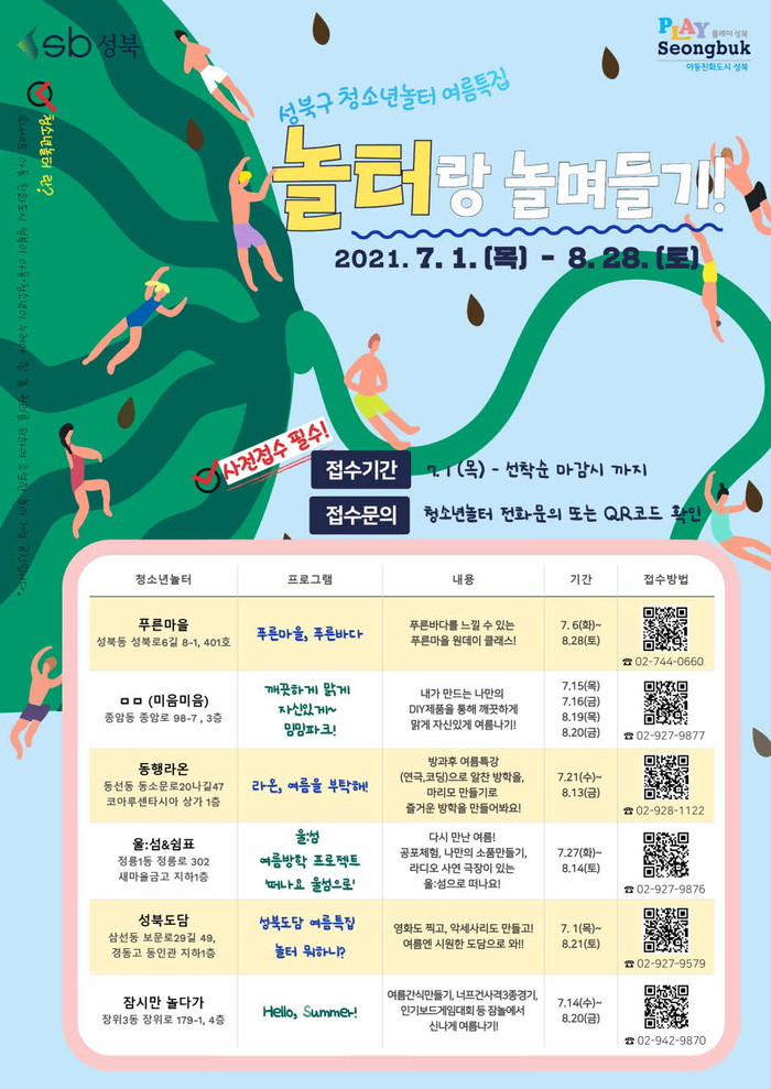 | ▲ 청소년놀터 여름방학 특별 프로그램 '놀터랑 놀며들기' 포스터. (사진제공=성북구청) |