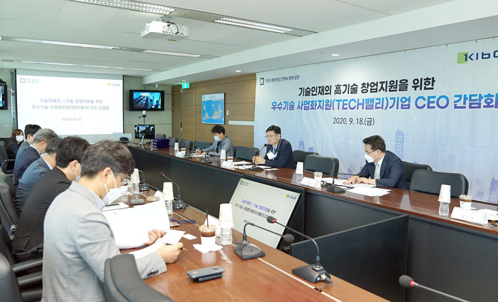이번 간담회에서는 기보 TECH밸리 보증을 통해 연구성과 기반 기술의 사업화를 추진 중인 유망기술혁신기업 6개사가 참석하여 창업 과정에서 겪은 애로사항과 건의 사항을 자유롭게 개진했다.