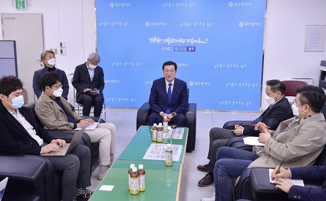 이용섭 광주광역시장이 월요일 오전 광주광역시청에서 출입기자 차담회를 갖고 자치구 경계조정 문제에 대한 문제와 광주형일자리사업(GGM), 광주광역시에 새롭게 신설된 경제자유무역청장 선임문제, 광주문화재단 대표 선임문제에 대해 입장을 밝혔다.