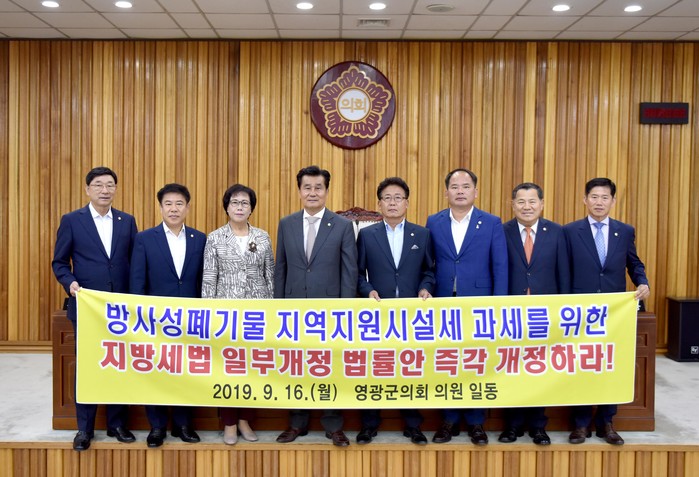 이어서 방사성폐기물 과세를 위한 지방세법 개정을 촉구하는 건의문이 전체 의원을 대표한 장기소 의원으로부터 발의됐다. 방사성폐기물에 대한 지역자원시설세 과세는 지역에 핵물질 오염 가능성이라는 고위험의 외부효과를 감수하면서 살아가고 있는 지역에 대한 정당한 보상이므로 지방세법 일부개정 법률안을 즉각 개정할 것을 주요 내용으로 담았다.