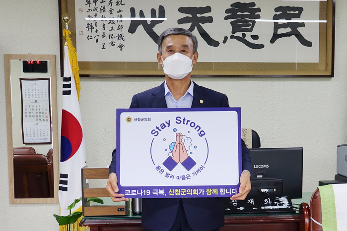 [산청=이영수 기자] 경남 산청군의회 심재화 의장은 15일 코로나19 극복을 위한 스테이 스트롱(Stay Strong) 캠페인에 동참했다.