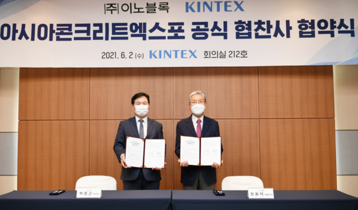 또한, 킨텍스는 건설인프라산업대전 공동개최 협약식에 이어 국내 콘크리트 블록분야 부동의 1위 기업인 주식회사 이노블록(대표이사 한용택)과 아시아콘크리트엑스포 공식 협찬사 협약식을 개최하였다.