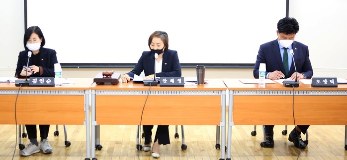 [수원=채종수 기자] 경기도의회 경제노동위원회 안혜영(더불어민주당·수원11) 의원은 최근 도의회 소회의실에서 열린 ‘경기도의회 경기도일자리재단 대표이사 후보자 인사청문위원회 제1차 회의’에서 인사청문위원회 위원장으로 선출됐다. 부위원장은 경제노동위원회 김인순(민주당·화성1), 안전행정위원회 오광덕(민주당·광명3) 의원으로 결정됐다.