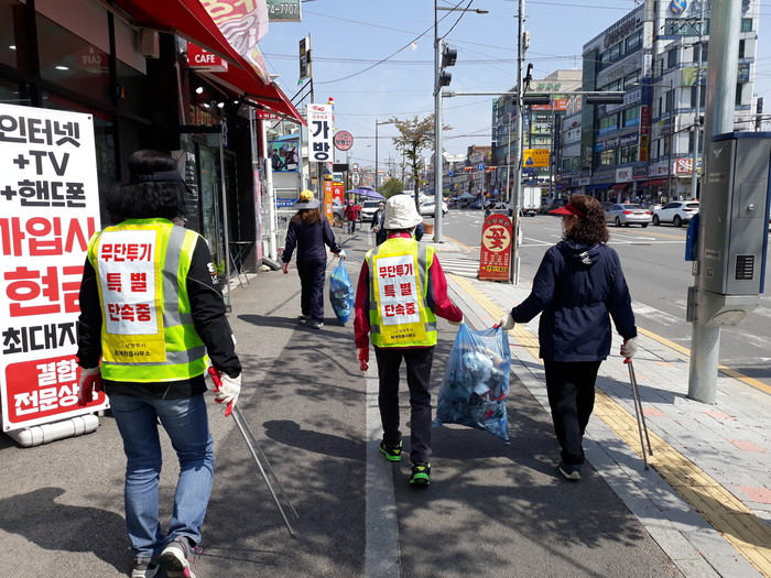 경기 남양주시 퇴계원읍 남여의용소방대는 최근 퇴계원8리·18리·25리 등 무단쓰레기투기 취약지역 및 노후된 자연마을 안길을 중심으로 환경정화활동을 실시했다. 사진은 봉사자들이 골목길을 다니면서 쓰레기를 줍고 있는 모습. (사진제공=남양주시청)