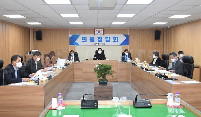 [동두천=김경진 기자] 경기 동두천시의회는 18일 의원회의실에서 ‘11월 중 의원정담회’를 개최하고, 집행부에서 발의한 2건의 안건과 시의원이 발의한 2건의 안건 등 총 4건의 안건에 대해 제안 설명을 듣고 의견을 교환했다.