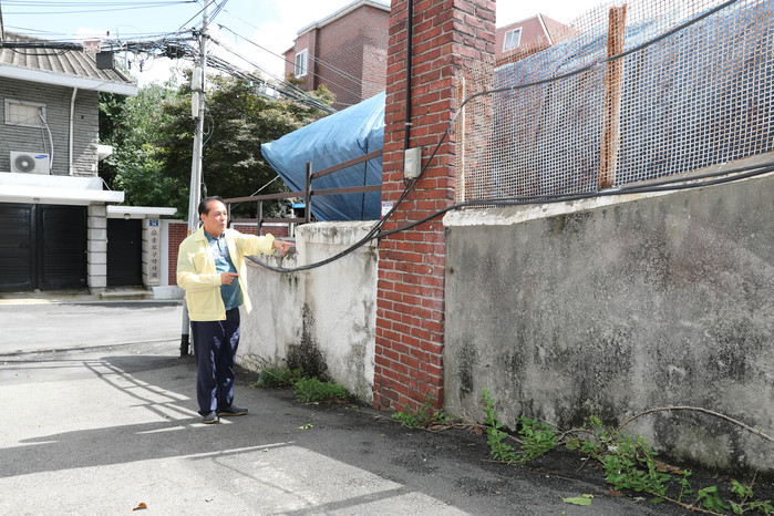 다음으로 최근에 무너진 혜화동 한옥을 찾아 태풍 대비 상황을 파악한 후 축대 붕괴 위험 지역을 점검했으며, 보도 함몰 지역을 찾아 집행부에 신속한 처리를 요청했다.