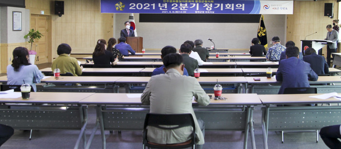 3층 대회의실에서 자문위원 및 관계자 40여명이 모인 가운데 ‘2021년 2분기 정기회의’를 개최했다.