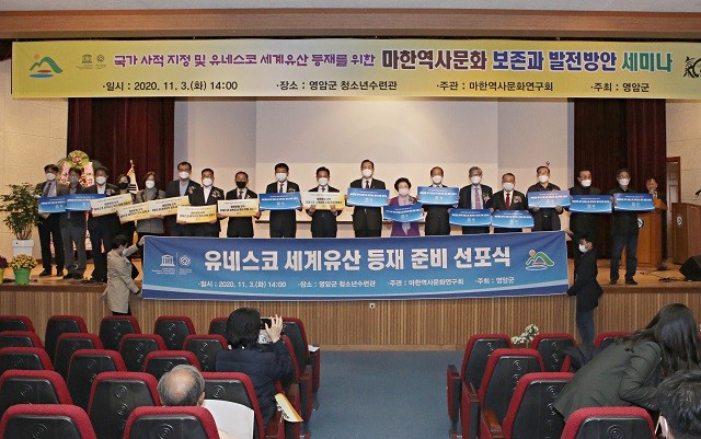 유네스코 세계유산 등재 준비 선포식과 함께한 마한역사문화 보존과 발전방안 세미나에는 전동평 영암군수, 서삼석 국회의원, 강찬원 영암군의회 의장, 노영미·조정기·유나종·박찬종·고천수 군의원이 참석하였으며, 김일윤·장경우 헌정회 부회장, 이승훈 마한역사연구회이사장(세한대총장), 유인학 마한역사연구회장, 김성애 영암교육지원청교육장, 김한남 문화원장 등 주요인사가 참석했다