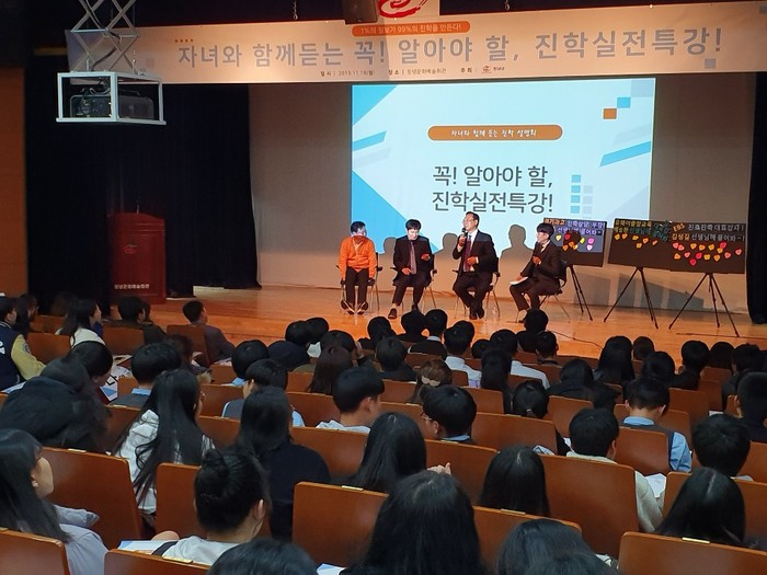 창녕군(군수 한정우)은 수능 이후 진학과 관련하여 고민이 많아질 창녕군 내 중·고등학생들을 위해 지난 18일, 창녕문화예술회관 소공연장에서 스타강사 초청 진학 특강을 진행했다고 밝혔다. 2019 창녕군 맞춤형 교육지원 사업의 일환으로 진행된 이번 설명회는 ‘자녀와 함께 듣는 꼭! 알아야 할 진학 실전 특강’이라는 제목으로 창녕군 내 중·고등학생 및 고등학생 자녀를 둔 학부모를 대상으로 진행했다. 이번 설명회는 EBS 진로진학 대표강사 김성길, 유웨이 중앙교육 교육평가연구원 부소장 백승환, 경기과학고등학교 진학상담부장 김명섭 강사로 구성되어 각 분야의 진학전문가의 집중 심화특강을 들을 수 있었다. EBS 김성길 강사는 2020년도 전반적인 입시 체계를 설명하고, 변화된 입시 상황에 맞추어 학생들이 진학 설계를 진행할 수 있는 특강을 펼쳤고 또한, 학부모가 자녀의 진학 준비 과정을 이해하고 공감하며 입시를 도울 수 있도록 유익한 정보를 공유했다.