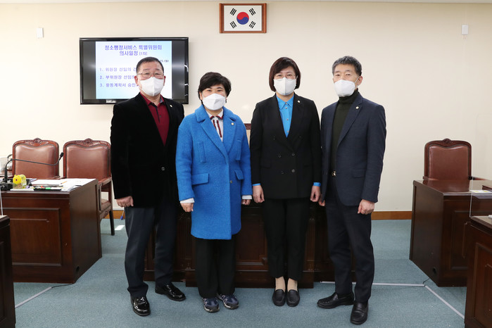 이날 청소행정서비스 특별위원회는 최미경, 김명희, 김영준, 이상수 의원 등 4명으로 구성됐으며, 이어진 특별위원회 회의에서 위원장에 최미경 의원, 부위원장에 김명희 의원을 각각 선임했다.