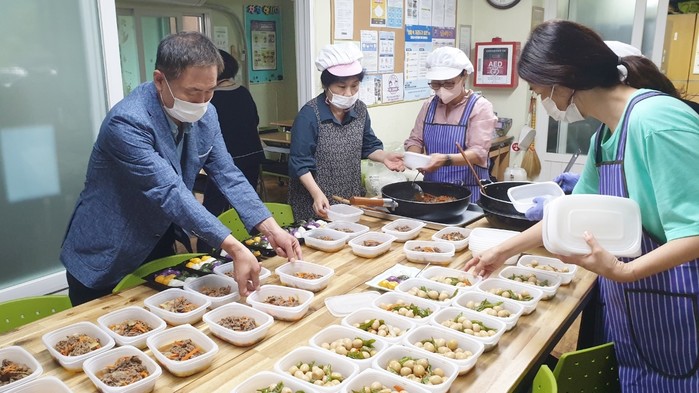 경기 수원시 장안구 조원1동 지역사회보장협의체는 7일 추석을 맞아 송편과 소불고기 등 반찬을 준비해 홀몸노인 20가구에 전달했다. 사진은 이날 봉사자들이 반찬을 포장하고 있는 모습. (사진제공=장안구청)