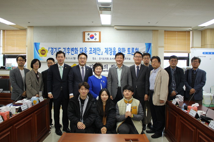 [수원=채종수 기자] 경기도의회 도시환경위원회 심규순 의원(더불어민주당·안양4)이 대표발의로 준비하고 있는 '경기도 기후변화 대응 조례안' 제정을 위한 토론회가 4일 도시환경위원회 회의실에서 열렸다.