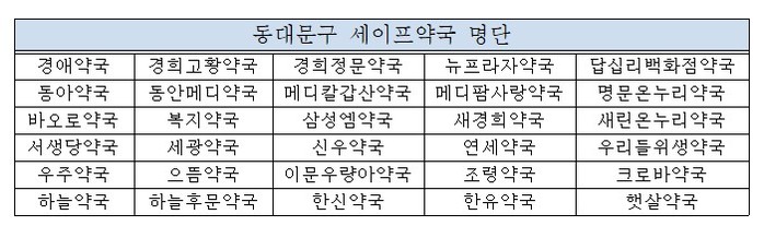 | ▲ 동대문구 세이프약국 명단. (사진제공=동대문구청) |