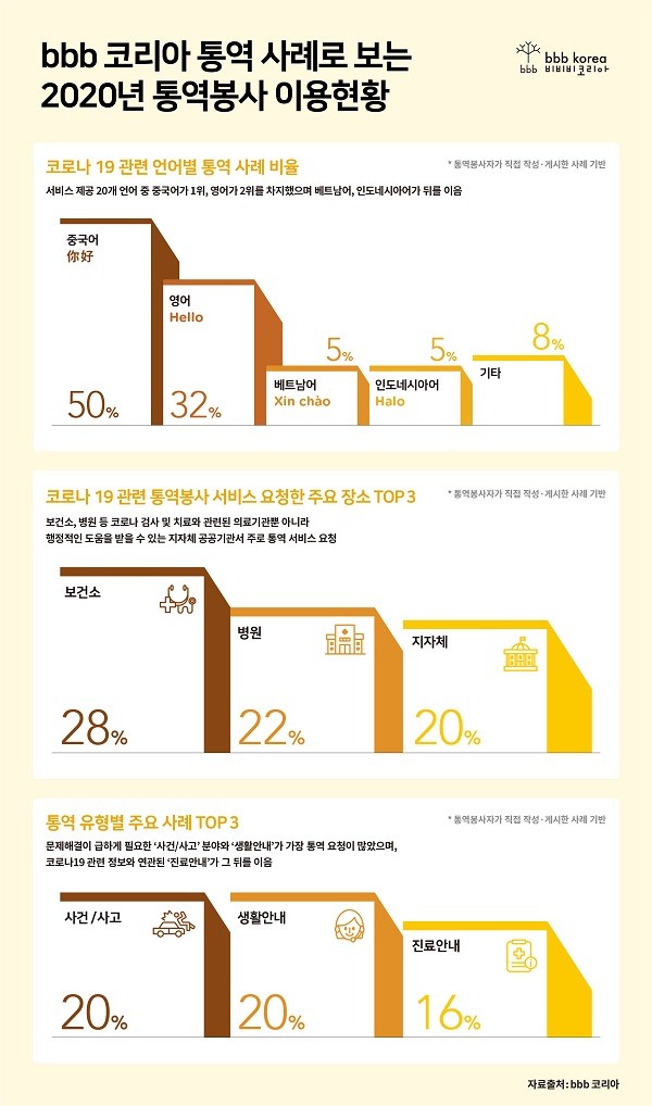 -의료기관, 지자체 등 코로나 관련 안내 필요한 곳에서 bbb 통역 서비스로 발 빠른 도움 제공