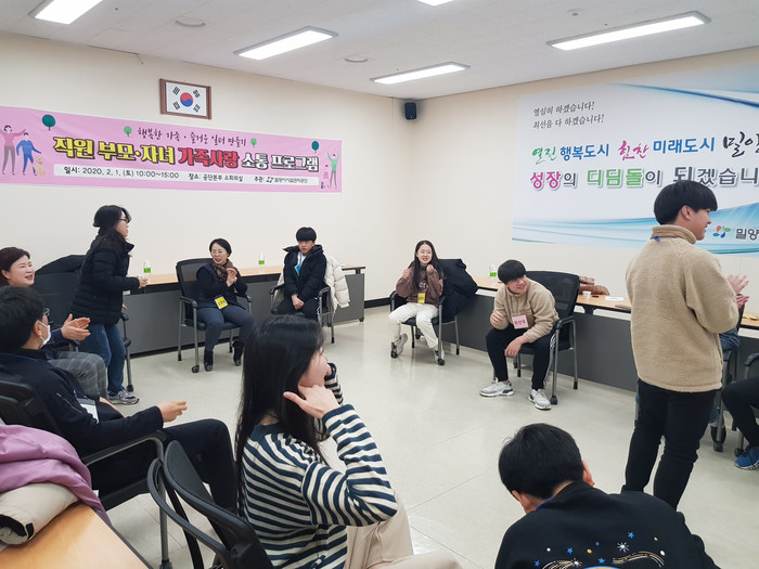 이번 행사는 밀양시시설관리공단이 주관하여 청소년 자녀를 둔 직원 5가정이 참석하였으며, 행복한 가정, 즐거운 일터 만들기를 위한 프로그램이 진행됐다.