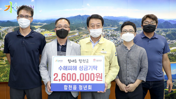정홍주 합천읍 청년회장은 "유례없는 긴 장마로 피해를 입은 수재민에게 조금이라도 힘을 보태고자 한다"며 "하루 빨리 힘을 합쳐 어려움을 극복하고 피해 지역 주민들이 건강한 일상으로 돌아가길 바란다"고 말했다.